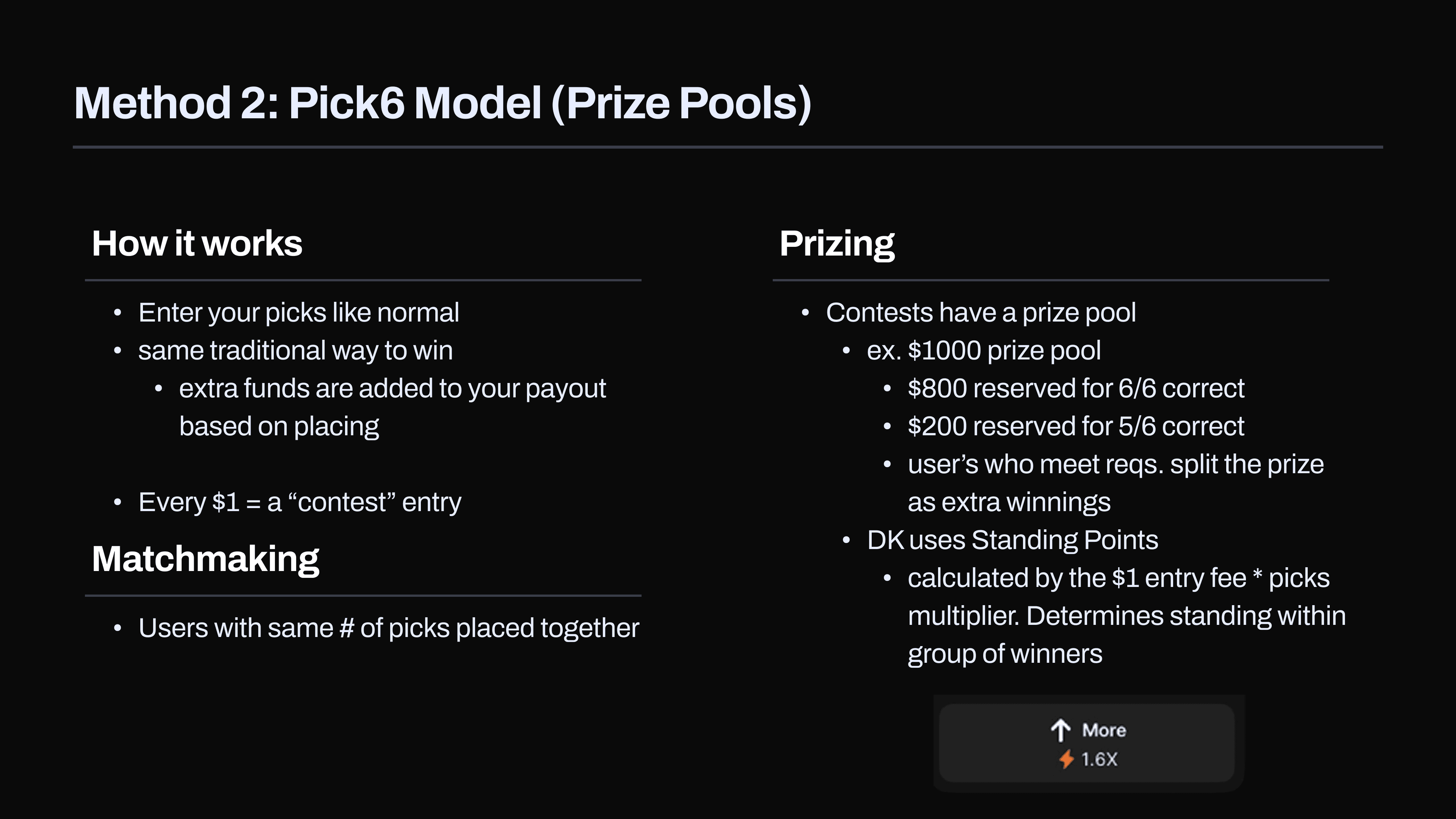 Leaderboard-based model: Competitive and skill-focused, but less flexible in terms of payout structure.