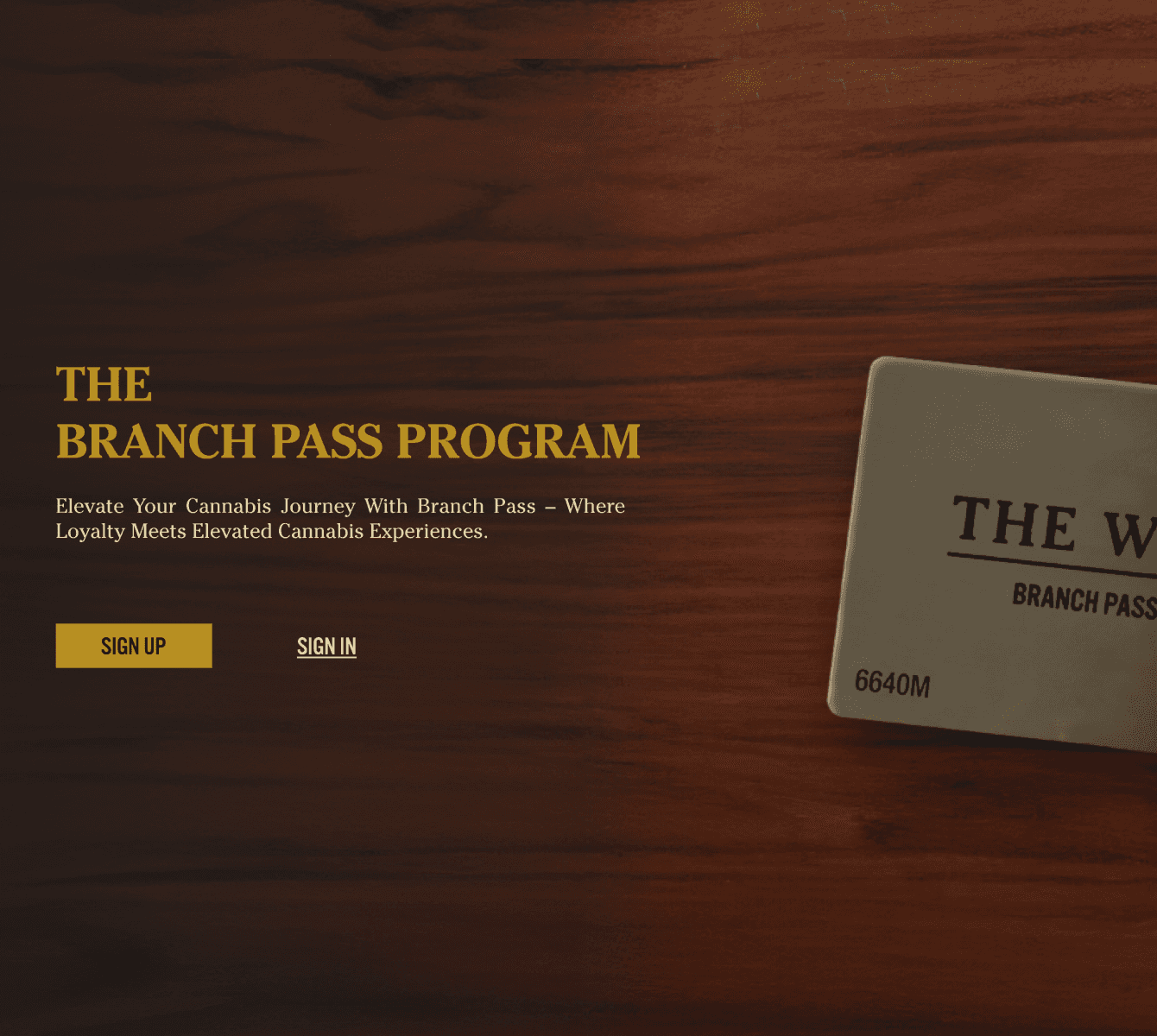 The Branch Pass Program page served as an entry point to The Woods Cannabis loyalty membership platform, showcasing the perks of joining and guiding users through membership tiers.