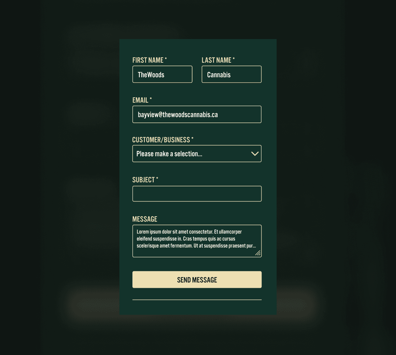 Both pages were designed for desktop and mobile, ensuring an optimal experience across all devices. Additionally, designing for The Woods Cannabis required strict adherence to Ontario’s cannabis advertising regulations, ensuring compliance while maintaining an engaging and user-friendly experience.